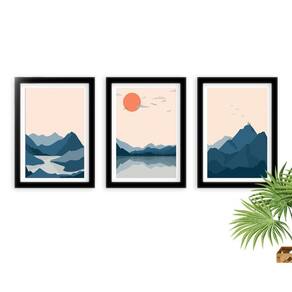 Kit 3 Quadros Decorativos com Molduras Montanhas Por do Sol Quadros decorativos fabricados com moldura de madeira de reflorestamento com acabamento laqueado, impressão a laser em papel couché 300g, fundo em madeira. As paredes ganham cor e vida com quadros e painéis decorativos. Escolha os modelos que faltam para deixar sua decoração ainda mais bonita. Na sala, no quarto ou em outros cômodos, as peças coloridas ou em preto e branco garantem mais estilo.