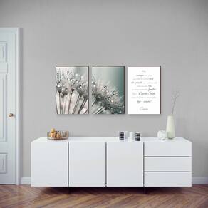 Kit 3 Quadros Decorativos Dente de Leão com Frase 40x60cm