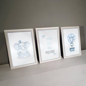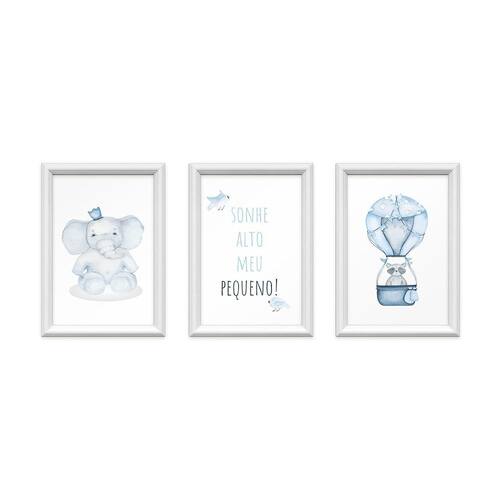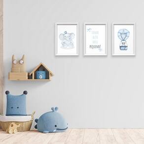 Kit 3 Quadros Decorativos Elefante Balão Azul 24x34cm Características Gerais do Produto: Benefícios do produto: Fabricados com materiais de alta qualidade, não desbotam, alem de fácil instalação.. Dimensões AxLxP CM : 34 X 24 X 1,2 Cada peça Formato: Retangular Produzido em: MDF, EVA e Impressão vinílica em altíssima definição Cor acabamento: Colorido : Este produto possui junto ao fabricante contra defeitos de fabricação Aplicação: Parede Acompanha o produto: 03 Quadros 03 Kit instalação : Este produto possui contra defeitos de fabricação Marca: Não Informado Ean: 7896182469956