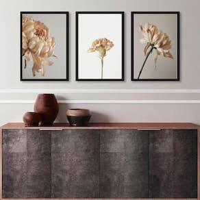 Kit 3 quadros decorativos elegantes flores bege 24x18cm Moldura: madeira preta Informações do produto tire todas as suas dúvidas no descritivo abaixo: decoração para quarto, sala, cozinha, escritório, área gourmet e muito mais. Chega de paredes vazias medidas - cada peça tem 24x18cm a5 . Material do papel - papel fotográfico brilhante de altíssima resolução acabamento - todos os quadros são acompanhados de uma película de acetato para proteção da imagem. - os quadros são embalados de forma segura com plástico bolha com camada dupla de acordo com o tamanho dos quadros. Garantia - garantia de 3 meses. Meu quadro chegou. Como posso fixá-lo Você precisa apenas de um martelo e um prego, pois os quadros já vão acompanhados de penduradores. Esta é a forma mais indicada. Caso prefira, você pode utilizar uma fita dupla face neste caso, sugerimos de alta qualidade para evitar que descole e seu quadro caia . Como posso limpar meu quadro A limpeza é feita como um móvel comum da sua casa. Apenas um pano seco ou espanador são suficientes para tal Ean: 7895408685576