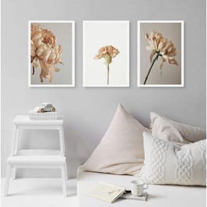 Kit 3 Quadros Decorativos Elegantes Flores Bege 45X34Cm