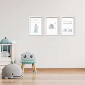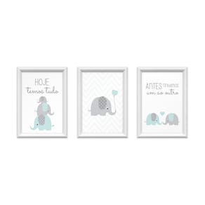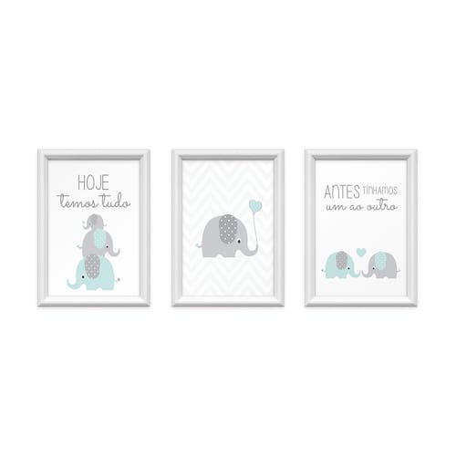 Kit 3 Quadros Decorativos Familia Elefantes 24x34cm