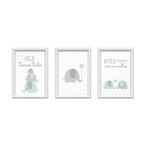 Kit 3 Quadros Decorativos Familia Elefantes 24x34cm