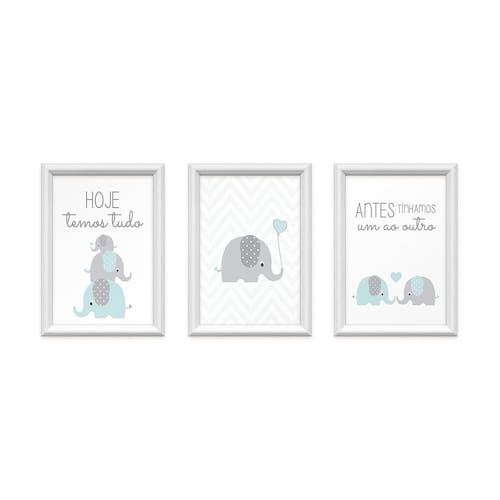 Kit 3 Quadros Decorativos Familia Elefantes 24x34cm Características Gerais do Produto: Benefícios do produto: Fabricados com materiais de alta qualidade, não desbotam, alem de fácil instalação.. Dimensões AxLxP CM : 34 X 24 X 1,2 Cada peça Formato: Retangular Produzido em: MDF, EVA e Impressão vinílica em altíssima definição Cor acabamento: Colorido : Este produto possui junto ao fabricante contra defeitos de fabricação Aplicação: Parede Acompanha o produto: 03 Quadros 03 Kit instalação : Este produto possui contra defeitos de fabricação Marca: Não Informado Ean: 7893681225137