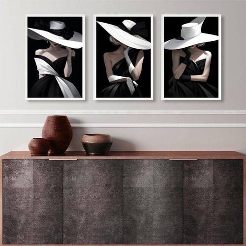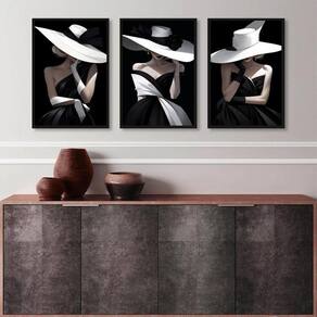 Kit 3 quadros decorativos fashion damas em preto e branco 33x24cm Moldura: madeira preta Informações do produto tire todas as suas dúvidas no descritivo abaixo: decoração para quarto, sala, cozinha, escritório, área gourmet e muito mais. Chega de paredes vazias medidas - cada peça tem 33x24cm a4 . Material do papel - papel fotográfico brilhante de altíssima resolução acabamento - todos os quadros são acompanhados de uma película de acetato para proteção da imagem. - os quadros são embalados de forma segura com plástico bolha com camada dupla de acordo com o tamanho dos quadros. Garantia - garantia de 3 meses. Meu quadro chegou. Como posso fixá-lo Você precisa apenas de um martelo e um prego, pois os quadros já vão acompanhados de penduradores. Esta é a forma mais indicada. Caso prefira, você pode utilizar uma fita dupla face neste caso, sugerimos de alta qualidade para evitar que descole e seu quadro caia . Como posso limpar meu quadro A limpeza é feita como um móvel comum da sua casa. Apenas um pano seco ou espanador são suficientes para tal Ean: 7893594417452