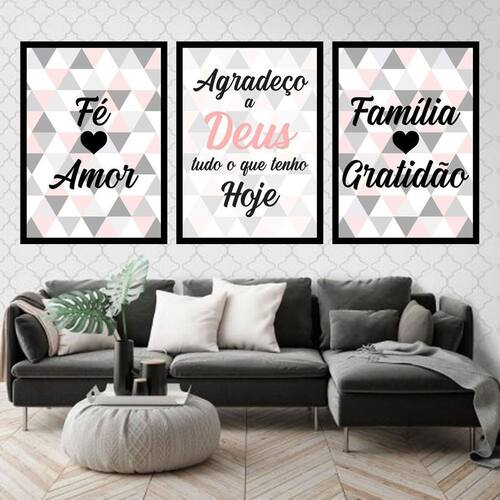 Transforme a sua decoração com este incrível Quadro Decorativo Fé, Amor, Família Triângulos. Ótima opção de quadro para sala, quarto, cozinha, escritório, área gourmet e muito mais. Com excelente acabamento, o quadro conta com película de acetato para proteção da imagem, além de moldura de madeira maciça. Para maior praticidade na fixação, o quadro decorativo acompanha pendurador e tudo que você precisa é apenas de um martelo e um prego. Esta é a forma mais indicada de fixar, mas você pode também utilizar uma fita dupla face de alta qualidade. Características: - Papel fotográfico brilhante de altíssima resolução - Acabamento com película de acetato para proteção da imagem - Moldura em madeira maciça - Pendurador pode ser retirado caso deseje fixar com fita dupla face Especificações técnicas Marca: Quadros On-Line Modelo: Fé, Amor, Família Triângulos Quantidade: 3 Moldura: Branca Tamanho total: 34 x 23 cm Tamanho imagem: A4 20 x 30 Material: Papel Fotográfico Brilhante Acabamento: Película de Acetato Moldura: Madeira Limpeza: Pano seco ou espanador : 3 meses Marca: Não Informado