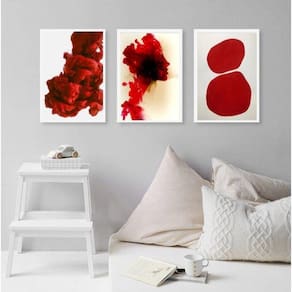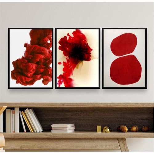 Kit 3 Quadros Decorativos Formas Abstratas Vermelhos 45X34Cm