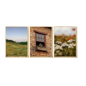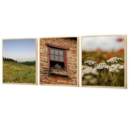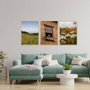 Kit 3 Quadros Decorativos Janela Antiga Jardim Paisagem Sala