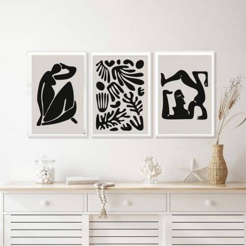 Kit 3 quadros decorativos matisse escultura pb 33x24cm - com vidro Cor: moldura branca Informações do produto tire todas as suas dúvidas no descritivo abaixo: decoração para quarto, sala, cozinha, escritório, área gourmet e muito mais. Chega de paredes vazias medidas - cada peça tem 33x24cm a4 . Material do papel - papel fotográfico brilhante de altíssima resolução acabamento - todos os quadros são acompanhados de vidro para proteção da imagem. - moldura em madeira maciça na cor preta ou branca conforme produto escolhido e pendurador . - os quadros são embalados de forma segura com plástico bolha com camada dupla de acordo com o tamanho dos quadros. - de 3 meses. Meu quadro chegou. Como posso fixá-lo Você precisa apenas de um martelo e um prego, pois os quadros já vão acompanhados de penduradores. Esta é a forma mais indicada. Como posso limpar meu quadro A limpeza é feita como um móvel comum da sua casa. Apenas um pano seco ou espanador são suficientes para tal