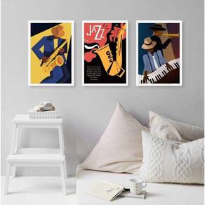 Kit 3 quadros decorativos posters cartazes jazz 45x34cm - com vidro Moldura: madeira branca Informações do produto tire todas as suas dúvidas no descritivo abaixo: decoração para quarto, sala, cozinha, escritório, área gourmet e muito mais. Chega de paredes vazias medidas - cada peça tem 45x34cm a3 . Material do papel - papel fotográfico brilhante de altíssima resolução acabamento - todos os quadros são acompanhados de vidro para proteção da imagem. - moldura em madeira maciça na cor preta ou branca conforme produto escolhido e pendurador . - os quadros são embalados de forma segura com plástico bolha com camada dupla de acordo com o tamanho dos quadros. Garantia - garantia de 3 meses. Meu quadro chegou. Como posso fixá-lo Você precisa apenas de um martelo e um prego, pois os quadros já vão acompanhados de penduradores. Esta é a forma mais indicada. Como posso limpar meu quadro A limpeza é feita como um móvel comum da sua casa. Apenas um pano seco ou espanador são suficientes para tal Ean: 7897980566083