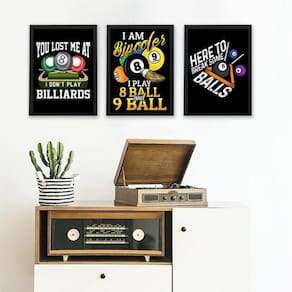 Kit 3 quadros decorativos sinuca bilhar 24x18cm - com vidro