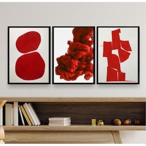 Kit 3 quadros decorativos vermelhos- arte moderna 24x18cm Moldura: madeira preta Informações do produto tire todas as suas dúvidas no descritivo abaixo: decoração para quarto, sala, cozinha, escritório, área gourmet e muito mais. Chega de paredes vazias medidas - cada peça tem 24x18cm a5 . Material do papel - papel fotográfico brilhante de altíssima resolução acabamento - todos os quadros são acompanhados de uma película de acetato para proteção da imagem. - os quadros são embalados de forma segura com plástico bolha com camada dupla de acordo com o tamanho dos quadros. Garantia - garantia de 3 meses. Meu quadro chegou. Como posso fixá-lo Você precisa apenas de um martelo e um prego, pois os quadros já vão acompanhados de penduradores. Esta é a forma mais indicada. Caso prefira, você pode utilizar uma fita dupla face neste caso, sugerimos de alta qualidade para evitar que descole e seu quadro caia . Como posso limpar meu quadro A limpeza é feita como um móvel comum da sua casa. Apenas um pano seco ou espanador são suficientes para tal Ean: 7891390865309