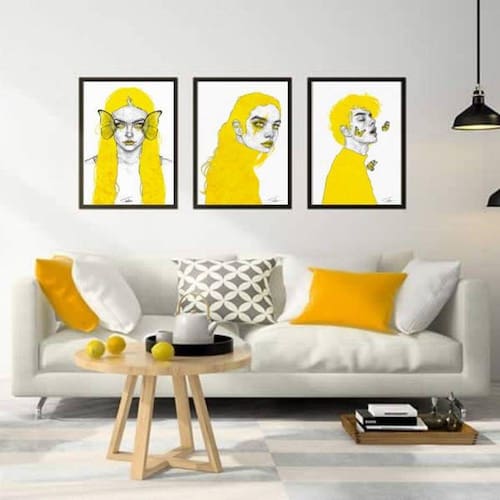 Kit 3 Quadros Decorativos Yellow Design - Tamanho: A4 (20 x 30) / Acabamento: Película de acetato / Moldura: Madeira preta