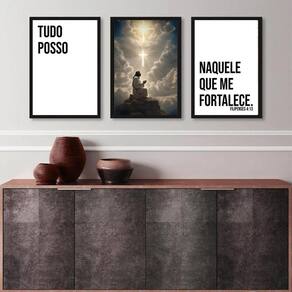Kit 3 quadros evangélicos tudo posso naquele que me fortalece 24x18cm Moldura: madeira branca Informações do produto tire todas as suas dúvidas no descritivo abaixo: decoração para quarto, sala, cozinha, escritório, área gourmet e muito mais. Chega de paredes vazias medidas - cada peça tem 24x18cm a5 . Material do papel - papel fotográfico brilhante de altíssima resolução acabamento - todos os quadros são acompanhados de uma película de acetato para proteção da imagem. - os quadros são embalados de forma segura com plástico bolha com camada dupla de acordo com o tamanho dos quadros. Garantia - garantia de 3 meses. Meu quadro chegou. Como posso fixá-lo Você precisa apenas de um martelo e um prego, pois os quadros já vão acompanhados de penduradores. Esta é a forma mais indicada. Caso prefira, você pode utilizar uma fita dupla face neste caso, sugerimos de alta qualidade para evitar que descole e seu quadro caia . Como posso limpar meu quadro A limpeza é feita como um móvel comum da sua casa. Apenas um pano seco ou espanador são suficientes para tal Ean: 7892486723718