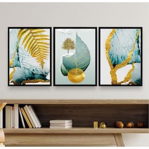 Garanta já o seu Kit 3 Quadros Folha Dourada Verde Água 33X24Cm e deixe sua casa ainda mais charmosa e elegante. Não perca essa oportunidade de transformar suas paredes vazias em verdadeiras obras de arte.