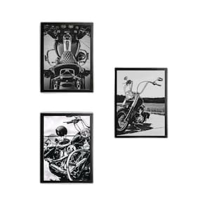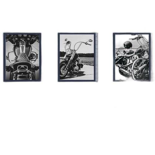 Kit 3 Quadros Fotografias Motocicletas 34x23cm - Moldura Branca Tamanho: A4 20 x 30 Acabamento: Película de acetato Moldura: Madeira Branca INFORMAÇÕES DO PRODUTO