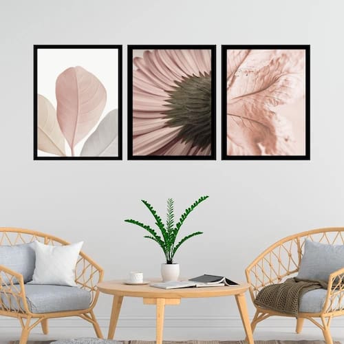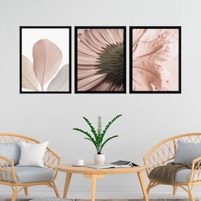 Kit 3 quadros fotos fragmentos flores rosê 45x34cm - com vidro Cor: moldura branca Informações do produto tire todas as suas dúvidas no descritivo abaixo: decoração para quarto, sala, cozinha, escritório, área gourmet e muito mais. Chega de paredes vazias medidas - cada peça tem 45x34cm a3 . Material do papel - papel fotográfico brilhante de altíssima resolução acabamento - todos os quadros são acompanhados de vidro para proteção da imagem. - moldura em madeira maciça na cor preta ou branca conforme produto escolhido e pendurador . - os quadros são embalados de forma segura com plástico bolha com camada dupla de acordo com o tamanho dos quadros. Garantia - garantia de 3 meses. Meu quadro chegou. Como posso fixá-lo Você precisa apenas de um martelo e um prego, pois os quadros já vão acompanhados de penduradores. Esta é a forma mais indicada. Como posso limpar meu quadro A limpeza é feita como um móvel comum da sua casa. Apenas um pano seco ou espanador são suficientes para tal