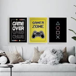 Com o Kit Quadros Gamer Game Over 33X24Cm 3 Peças, você terá uma decoração temática e moderna, que vai deixar o seu ambiente ainda mais estiloso. Aproveite e garanta já o seu!