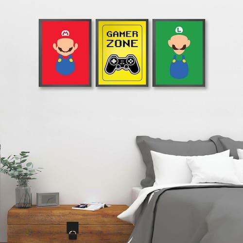 Garanta agora mesmo o Kit 3 Quadros Para Quarto Gamer Zone Coloridos 45X34Cm e transforme o seu ambiente em um verdadeiro paraíso para os amantes de games Ean: 7896450715334