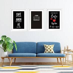 Kit 3 quadros grandes coffee and faith 60x48cm Cor: moldura preta Informações do produto tire todas as suas dúvidas no descritivo abaixo: decoração para quarto, sala, cozinha, escritório, área gourmet e muito mais. Chega de paredes vazias medidas - cada peça tem 60x48cm . Material do papel - papel fotográfico brilhante de altíssima resolução acabamento - todos os quadros são acompanhados de vidro para proteção da imagem. - moldura em madeira maciça na cor preta ou branca conforme produto escolhido e pendurador. - paspatur branco com 7cm de largura - os quadros são embalados de forma segura com plástico bolha com camada dupla de acordo com o tamanho dos quadros. - de 3 meses. Meu quadro chegou. Como posso fixá-lo Você precisa apenas de um martelo e um prego, pois os quadros já vão acompanhados de penduradores. Esta é a forma mais indicada. Como posso limpar meu quadro A limpeza é feita como um móvel comum da sua casa. Apenas um pano seco ou espanador são suficientes para tal
