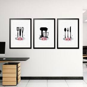 Kit 3 Quadros Grandes Cozinha Flores 60X48Cm