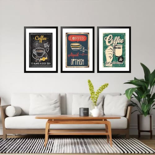 Kit 3 quadros grandes hot coffee vintage 60x48cm Cor: moldura preta Informações do produto tire todas as suas dúvidas no descritivo abaixo: decoração para quarto, sala, cozinha, escritório, área gourmet e muito mais. Chega de paredes vazias medidas - cada peça tem 60x48cm . Material do papel - papel fotográfico brilhante de altíssima resolução acabamento - todos os quadros são acompanhados de vidro para proteção da imagem. - moldura em madeira maciça na cor preta ou branca conforme produto escolhido e pendurador. - paspatur branco com 7cm de largura - os quadros são embalados de forma segura com plástico bolha com camada dupla de acordo com o tamanho dos quadros. - de 3 meses. Meu quadro chegou. Como posso fixá-lo Você precisa apenas de um martelo e um prego, pois os quadros já vão acompanhados de penduradores. Esta é a forma mais indicada. Como posso limpar meu quadro A limpeza é feita como um móvel comum da sua casa. Apenas um pano seco ou espanador são suficientes para tal