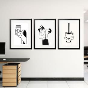 Kit 3 quadros grandes love coffee 60x48cm Cor: moldura branca Informações do produto tire todas as suas dúvidas no descritivo abaixo: decoração para quarto, sala, cozinha, escritório, área gourmet e muito mais. Chega de paredes vazias medidas - cada peça tem 60x48cm . Material do papel - papel fotográfico brilhante de altíssima resolução acabamento - todos os quadros são acompanhados de vidro para proteção da imagem. - moldura em madeira maciça na cor preta ou branca conforme produto escolhido e pendurador. - paspatur branco com 7cm de largura - os quadros são embalados de forma segura com plástico bolha com camada dupla de acordo com o tamanho dos quadros. - de 3 meses. Meu quadro chegou. Como posso fixá-lo Você precisa apenas de um martelo e um prego, pois os quadros já vão acompanhados de penduradores. Esta é a forma mais indicada. Como posso limpar meu quadro A limpeza é feita como um móvel comum da sua casa. Apenas um pano seco ou espanador são suficientes para tal Marca: Não Informado