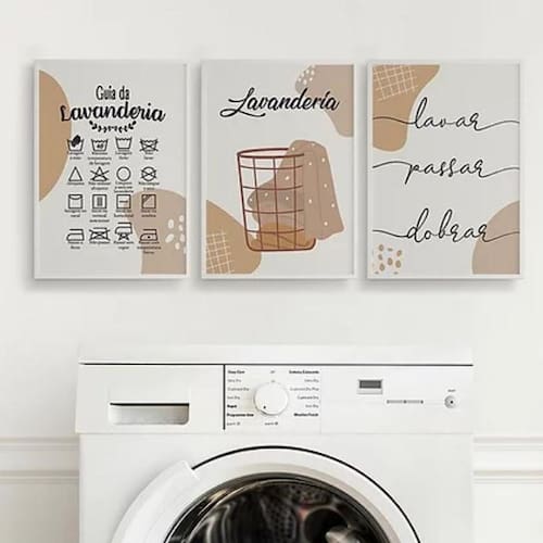 Kit 3 quadros guia para lavanderia 33x24cm - com vidro Moldura: madeira branca Informações do produto Decoração para quarto, sala, cozinha, escritório, área gourmet e muito mais. Chega de paredes vazias Medidas - cada peça tem 33x24cm a4 . Material do papel - papel fotográfico brilhante de altíssima resolução Acabamento - todos os quadros são acompanhados de vidro para proteção da imagem. - moldura em madeira maciça e pendurador. - os quadros são embalados de forma segura com plástico bolha com camada dupla de acordo com o tamanho dos quadros. - de 3 meses. Meu quadro chegou. Como posso fixá-lo Você precisa apenas de um martelo e um prego, pois os quadros já vão acompanhados de penduradores. Esta é a forma mais indicada. Como posso limpar meu quadro A limpeza é feita como um móvel comum da sua casa. Apenas um pano seco ou espanador são suficientes para tal