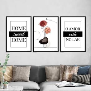 Kit 3 quadros home sweet home- flor 33x24cm Moldura: madeira branca Informações do produto tire todas as suas dúvidas no descritivo abaixo: decoração para quarto, sala, cozinha, escritório, área gourmet e muito mais. Chega de paredes vazias medidas - cada peça tem 33x24cm a4 . Material do papel - papel fotográfico brilhante de altíssima resolução acabamento - todos os quadros são acompanhados de uma película de acetato para proteção da imagem. - os quadros são embalados de forma segura com plástico bolha com camada dupla de acordo com o tamanho dos quadros. - de 3 meses. Meu quadro chegou. Como posso fixá-lo Você precisa apenas de um martelo e um prego, pois os quadros já vão acompanhados de penduradores. Esta é a forma mais indicada. Caso prefira, você pode utilizar uma fita dupla face neste caso, sugerimos de alta qualidade para evitar que descole e seu quadro caia . Como posso limpar meu quadro A limpeza é feita como um móvel comum da sua casa. Apenas um pano seco ou espanador são suficientes para tal Ean: 7895891417128