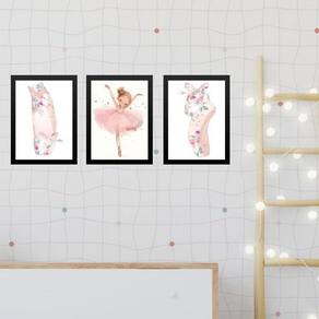 Kit 3 quadros infantis bailarina floral 33x24cm Moldura: madeira preta Informações do produto tire todas as suas dúvidas no descritivo abaixo: decoração para quarto, sala, cozinha, escritório, área gourmet e muito mais. Chega de paredes vazias medidas - cada peça tem 33x24cm a4 . Material do papel - papel fotográfico brilhante de altíssima resolução acabamento - todos os quadros são acompanhados de uma película de acetato para proteção da imagem. - os quadros são embalados de forma segura com plástico bolha com camada dupla de acordo com o tamanho dos quadros. Garantia - garantia de 3 meses. Meu quadro chegou. Como posso fixá-lo Você precisa apenas de um martelo e um prego, pois os quadros já vão acompanhados de penduradores. Esta é a forma mais indicada. Caso prefira, você pode utilizar uma fita dupla face neste caso, sugerimos de alta qualidade para evitar que descole e seu quadro caia . Como posso limpar meu quadro A limpeza é feita como um móvel comum da sua casa. Apenas um pano seco ou espanador são suficientes para tal