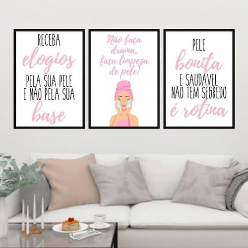 Kit 3 quadros limpeza de pele 60x40cm Moldura: madeira preta Informações do produto tire todas as suas dúvidas no descritivo abaixo: decoração para quarto, sala, cozinha, escritório, área gourmet e muito mais. Chega de paredes vazias medidas - cada peça tem 60x42cm a2 . Material do papel - papel fotográfico brilhante de altíssima resolução acabamento - todos os quadros são acompanhados de uma película de acetato para proteção da imagem. - os quadros são embalados de forma segura com plástico bolha com camada dupla de acordo com o tamanho dos quadros. - de 3 meses. Meu quadro chegou. Como posso fixá-lo Você precisa apenas de um martelo e um prego, pois os quadros já vão acompanhados de penduradores. Esta é a forma mais indicada. Caso prefira, você pode utilizar uma fita dupla face neste caso, sugerimos de alta qualidade para evitar que descole e seu quadro caia . Como posso limpar meu quadro A limpeza é feita como um móvel comum da sua casa. Apenas um pano seco ou espanador são suficientes para tal Marca: Não Informado