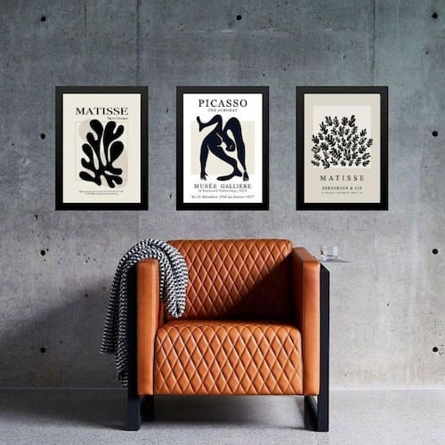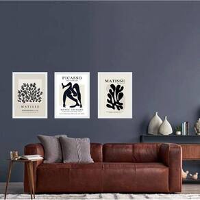 Kit 3 quadros matisse picasso preto e nude 24x18cm Moldura: madeira preta Informações do produto tire todas as suas dúvidas no descritivo abaixo: decoração para quarto, sala, cozinha, escritório, área gourmet e muito mais. Chega de paredes vazias medidas - cada peça tem 24x18cm a5 . Material do papel - papel fotográfico brilhante de altíssima resolução acabamento - todos os quadros são acompanhados de uma película de acetato para proteção da imagem. - os quadros são embalados de forma segura com plástico bolha com camada dupla de acordo com o tamanho dos quadros. Garantia - garantia de 3 meses. Meu quadro chegou. Como posso fixá-lo Você precisa apenas de um martelo e um prego, pois os quadros já vão acompanhados de penduradores. Esta é a forma mais indicada. Caso prefira, você pode utilizar uma fita dupla face neste caso, sugerimos de alta qualidade para evitar que descole e seu quadro caia . Como posso limpar meu quadro A limpeza é feita como um móvel comum da sua casa. Apenas um pano seco ou espanador são suficientes para tal