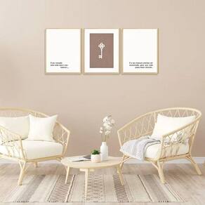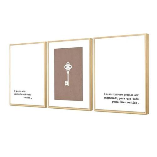 Kit 3 Quadros Minimalista Chave Frases Motivação Coração