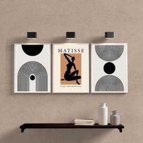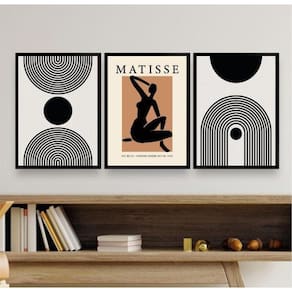 Este Kit de 3 Quadros Minimalistas é perfeito para a decoração da sua sala. Com o tema Matisse, cada peça tem 24x18cm A5 , ideal para preencher as paredes vazias do seu ambiente. Os quadros possuem uma moldura de madeira branca, que traz um toque de elegância ao conjunto.