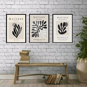 Kit 3 Quadros Decorativos Minimalistas Folhas Matisse 33x24cm