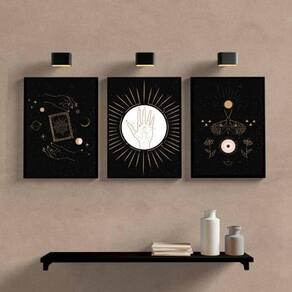 Kit 3 Quadros Místicos 24X18Cm Moldura: madeira branca Informações do produto Decoração para quarto, sala, cozinha, escritório, área gourmet e muito mais. Chega de paredes vazias. Medidas - cada peça tem 24x18cm a5 . Material do papel - papel fotográfico brilhante de altíssima resolução Acabamento - todos os quadros são acompanhados de uma película de acetato para proteção da imagem. - moldura em madeira maciça na cor branca e pendurador móvel que pode ser retirado facilmente caso deseje fixar com fita dupla face. - os quadros são embalados de forma segura com plástico bolha com camada dupla de acordo com o tamanho dos quadros. - de 3 meses Meu quadro chegou. Como posso fixá-lo: Você precisa apenas de um martelo e um prego, pois os quadros já vão acompanhados de penduradores. Esta é a forma mais indicada. Caso prefira, você pode utilizar uma fita dupla face neste caso, sugerimos de alta qualidade para evitar que descole e seu quadro caia . Como posso limpar meu quadro: A limpeza é feita como um móvel comum da sua casa. Apenas um pano seco ou espanador são suficientes para tal Marca: Não Informado