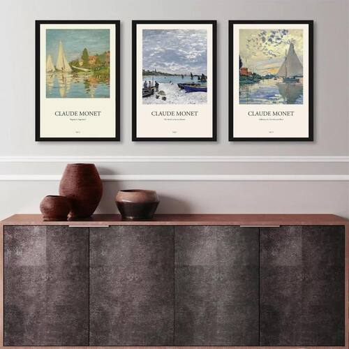 Kit 3 quadros monet - regatas 33x24cm Moldura: madeira preta Informações do produto tire todas as suas dúvidas no descritivo abaixo: decoração para quarto, sala, cozinha, escritório, área gourmet e muito mais. Chega de paredes vazias medidas - cada peça tem 33x24cm a4 . Material do papel - papel fotográfico brilhante de altíssima resolução acabamento - todos os quadros são acompanhados de uma película de acetato para proteção da imagem. - os quadros são embalados de forma segura com plástico bolha com camada dupla de acordo com o tamanho dos quadros. - de 3 meses. Meu quadro chegou. Como posso fixá-lo Você precisa apenas de um martelo e um prego, pois os quadros já vão acompanhados de penduradores. Esta é a forma mais indicada. Caso prefira, você pode utilizar uma fita dupla face neste caso, sugerimos de alta qualidade para evitar que descole e seu quadro caia . Como posso limpar meu quadro A limpeza é feita como um móvel comum da sua casa. Apenas um pano seco ou espanador são suficientes para tal Marca: Não Informado