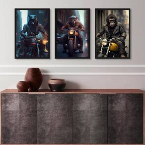 Kit 3 quadros motoqueiros animais 45x34cm Moldura: madeira branca Informações do produto tire todas as suas dúvidas no descritivo abaixo: decoração para quarto, sala, cozinha, escritório, área gourmet e muito mais. Chega de paredes vazias. Medidas - cada peça tem 45x34cm a3 . Material do papel - papel fotográfico brilhante de altíssima resolução acabamento - todos os quadros são acompanhados de uma película de acetato para proteção da imagem. - os quadros são embalados de forma segura com plástico bolha com camada dupla de acordo com o tamanho dos quadros. - de 3 meses. Meu quadro chegou. Como posso fixá-lo Você precisa apenas de um martelo e um prego, pois os quadros já vão acompanhados de penduradores. Esta é a forma mais indicada. Caso prefira, você pode utilizar uma fita dupla face neste caso, sugerimos de alta qualidade para evitar que descole e seu quadro caia . Como posso limpar meu quadro A limpeza é feita como um móvel comum da sua casa. Apenas um pano seco ou espanador são suficientes para tal Marca: Não Informado