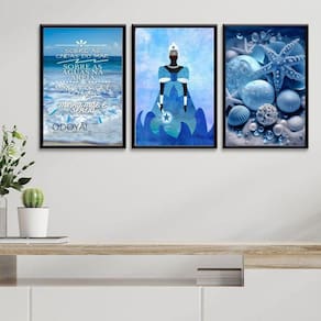 Kit 3 quadros orixá iemanjá- odayá 24x18cm - com vidro Moldura: madeira preta Informações do produto tire todas as suas dúvidas no descritivo abaixo: decoração para quarto, sala, cozinha, escritório, área gourmet e muito mais. Chega de paredes vazias medidas - cada peça tem 24x18cm a5 . Material do papel - papel fotográfico brilhante de altíssima resolução acabamento - todos os quadros são acompanhados de vidro para proteção da imagem. - moldura em madeira maciça na cor preta ou branca conforme produto escolhido e pendurador . - os quadros são embalados de forma segura com plástico bolha com camada dupla de acordo com o tamanho dos quadros. Garantia - garantia de 3 meses. Meu quadro chegou. Como posso fixá-lo Você precisa apenas de um martelo e um prego, pois os quadros já vão acompanhados de penduradores. Esta é a forma mais indicada. Como posso limpar meu quadro A limpeza é feita como um móvel comum da sua casa. Apenas um pano seco ou espanador são suficientes para tal
