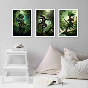 Kit 3 quadros oxossi guerreiro - candomblé 24x18cm - com vidro Moldura: madeira branca Informações do produto tire todas as suas dúvidas no descritivo abaixo: decoração para quarto, sala, cozinha, escritório, área gourmet e muito mais. Chega de paredes vazias medidas - cada peça tem 24x18cm a5 . Material do papel - papel fotográfico brilhante de altíssima resolução acabamento - todos os quadros são acompanhados de vidro para proteção da imagem. - moldura em madeira maciça na cor preta ou branca conforme produto escolhido e pendurador . - os quadros são embalados de forma segura com plástico bolha com camada dupla de acordo com o tamanho dos quadros. Garantia - garantia de 3 meses. Meu quadro chegou. Como posso fixá-lo Você precisa apenas de um martelo e um prego, pois os quadros já vão acompanhados de penduradores. Esta é a forma mais indicada. Como posso limpar meu quadro A limpeza é feita como um móvel comum da sua casa. Apenas um pano seco ou espanador são suficientes para tal