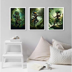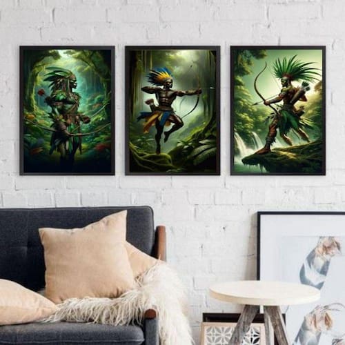 Kit 3 quadros oxossi guerreiro - candomblé 45x34cm - com vidro
