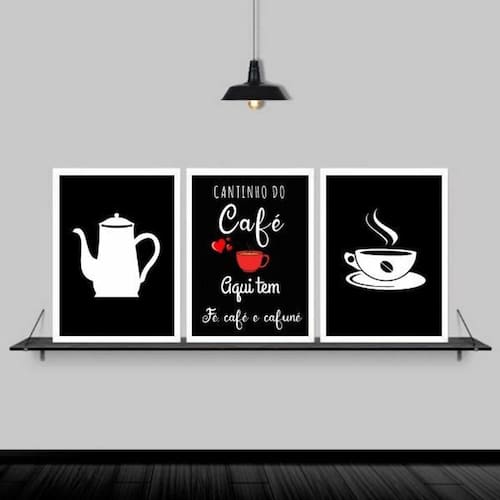 Kit 3 quadros para cantinho do café 24x18cm Moldura: madeira branca