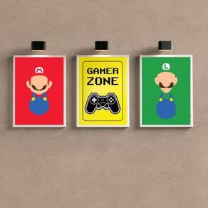 Este Kit 3 Quadros Para Quarto Gamer Zone Coloridos 33X24Cm é perfeito para os amantes de jogos que desejam decorar seu quarto de forma única e personalizada. Com três quadros coloridos, cada um medindo 33x24cm, você poderá dar um toque especial ao seu espaço de jogos.