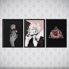 Kit 3 quadros para quarto mulher e rosas 45x34cm Moldura: madeira preta Informações do produto tire todas as suas dúvidas no descritivo abaixo: decoração para quarto, sala, cozinha, escritório, área gourmet e muito mais. Chega de paredes vazias. Medidas - cada peça tem 45x34cm a3 . Material do papel - papel fotográfico brilhante de altíssima resolução acabamento - todos os quadros são acompanhados de uma película de acetato para proteção da imagem. - os quadros são embalados de forma segura com plástico bolha com camada dupla de acordo com o tamanho dos quadros. - de 3 meses. Meu quadro chegou. Como posso fixá-lo Você precisa apenas de um martelo e um prego, pois os quadros já vão acompanhados de penduradores. Esta é a forma mais indicada. Caso prefira, você pode utilizar uma fita dupla face neste caso, sugerimos de alta qualidade para evitar que descole e seu quadro caia . Como posso limpar meu quadro A limpeza é feita como um móvel comum da sua casa. Apenas um pano seco ou espanador são suficientes para tal Marca: Não Informado