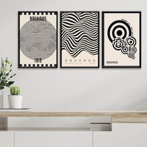 Kit 3 Quadros Posters Bauhaus - Preto E Branco 24X18Cm Vidro