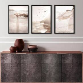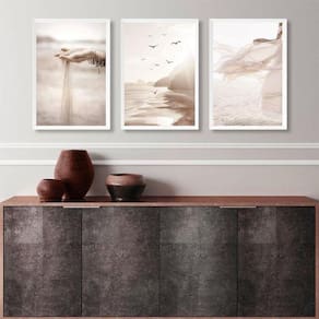 Kit 3 quadros praia bege e marrom- leveza 45x34cm Moldura: madeira branca Informações do produto tire todas as suas dúvidas no descritivo abaixo: decoração para quarto, sala, cozinha, escritório, área gourmet e muito mais. Chega de paredes vazias. Medidas - cada peça tem 45x34cm a3 . Material do papel - papel fotográfico brilhante de altíssima resolução acabamento - todos os quadros são acompanhados de uma película de acetato para proteção da imagem. - os quadros são embalados de forma segura com plástico bolha com camada dupla de acordo com o tamanho dos quadros. Garantia - garantia de 3 meses. Meu quadro chegou. Como posso fixá-lo Você precisa apenas de um martelo e um prego, pois os quadros já vão acompanhados de penduradores. Esta é a forma mais indicada. Caso prefira, você pode utilizar uma fita dupla face neste caso, sugerimos de alta qualidade para evitar que descole e seu quadro caia . Como posso limpar meu quadro A limpeza é feita como um móvel comum da sua casa. Apenas um pano seco ou espanador são suficientes para tal Ean: 7891666400531