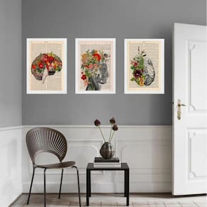 Kit 3 quadros psiquiatria cérebro flores 24x18cm - com vidro Moldura: madeira preta Informações do produto tire todas as suas dúvidas no descritivo abaixo: decoração para quarto, sala, cozinha, escritório, área gourmet e muito mais. Chega de paredes vazias medidas - cada peça tem 24x18cm a5 . Material do papel - papel fotográfico brilhante de altíssima resolução acabamento - todos os quadros são acompanhados de vidro para proteção da imagem. - moldura em madeira maciça na cor preta ou branca conforme produto escolhido e pendurador . - os quadros são embalados de forma segura com plástico bolha com camada dupla de acordo com o tamanho dos quadros. Garantia - garantia de 3 meses. Meu quadro chegou. Como posso fixá-lo Você precisa apenas de um martelo e um prego, pois os quadros já vão acompanhados de penduradores. Esta é a forma mais indicada. Como posso limpar meu quadro A limpeza é feita como um móvel comum da sua casa. Apenas um pano seco ou espanador são suficientes para tal