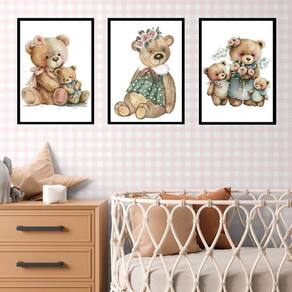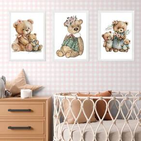 Kit 3 quadros quarto bebê - ursinha vintage 33x24cm Moldura: madeira branca Informações do produto tire todas as suas dúvidas no descritivo abaixo: decoração para quarto, sala, cozinha, escritório, área gourmet e muito mais. Chega de paredes vazias medidas - cada peça tem 33x24cm a4 . Material do papel - papel fotográfico brilhante de altíssima resolução acabamento - todos os quadros são acompanhados de uma película de acetato para proteção da imagem. - os quadros são embalados de forma segura com plástico bolha com camada dupla de acordo com o tamanho dos quadros. Garantia - garantia de 3 meses. Meu quadro chegou. Como posso fixá-lo Você precisa apenas de um martelo e um prego, pois os quadros já vão acompanhados de penduradores. Esta é a forma mais indicada. Caso prefira, você pode utilizar uma fita dupla face neste caso, sugerimos de alta qualidade para evitar que descole e seu quadro caia . Como posso limpar meu quadro A limpeza é feita como um móvel comum da sua casa. Apenas um pano seco ou espanador são suficientes para tal Ean: 7893622078433