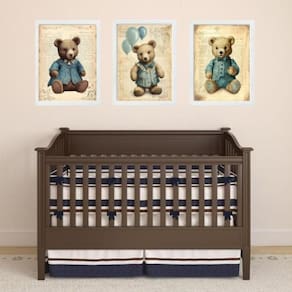 Kit 3 quadros quarto bebê ursos vintage 33x24cm - com vidro Cor: moldura preta Informações do produto tire todas as suas dúvidas no descritivo abaixo: decoração para quarto, sala, cozinha, escritório, área gourmet e muito mais. Chega de paredes vazias medidas - cada peça tem 33x24cm a4 . Material do papel - papel fotográfico brilhante de altíssima resolução acabamento - todos os quadros são acompanhados de vidro para proteção da imagem. - moldura em madeira maciça na cor preta ou branca conforme produto escolhido e pendurador . - os quadros são embalados de forma segura com plástico bolha com camada dupla de acordo com o tamanho dos quadros. Garantia - garantia de 3 meses. Meu quadro chegou. Como posso fixá-lo Você precisa apenas de um martelo e um prego, pois os quadros já vão acompanhados de penduradores. Esta é a forma mais indicada. Como posso limpar meu quadro A limpeza é feita como um móvel comum da sua casa. Apenas um pano seco ou espanador são suficientes para tal
