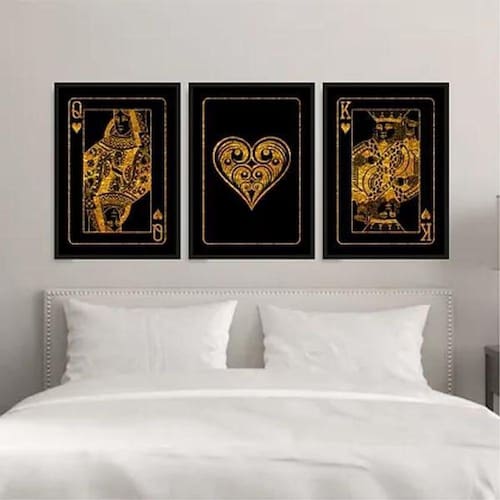 Procurando por uma opção de decoração elegante e sofisticada para o seu ambiente? Apresentamos o Kit 3 Quadros Rei E Rainha Copas Preto E Dourado. Com medidas de 33x24cm A4 , estes quadros são perfeitos para compor a decoração de quartos, salas, cozinhas, escritórios, áreas gourmet e muito mais.